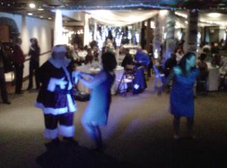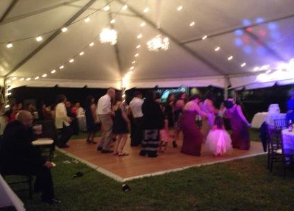 | Some of the staff and runners dancing at the Ronald McDonald House Firecracker 5K Run "after party". |